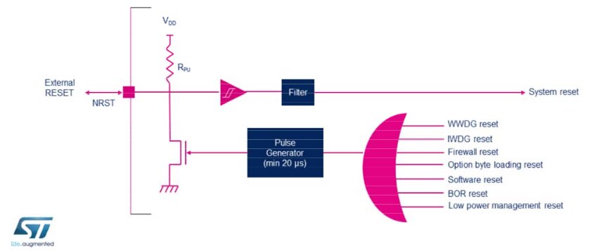 RCs and PLL. VDDA and VSSA must be connected to VDD and VSS, respectively.”). VDDA is indeed connected to VDD, the reset pin is connected through a resistor to VDDA. I think the resistor value is too high perhaps? Shorting out the resistor asserts enough of a voltage on the reset pin to stop the CPU resetting. The irony of the situation is I have had a comment in the bottom of main.c saying TODO: Check reset pin this whole time…