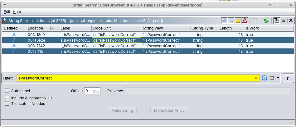 However since the headunit was replaced, I seemingly got a new software version installed that had an 8 digit passcode. Doing some digging online lots of people referenced a set of 8 digit codes from decompilation of the firmware, but after trying a couple of them, I started getting sweaty palms since the car limits how many times you can retry. So in order to not disable my headunit, I needed to do some digging around the firmware.