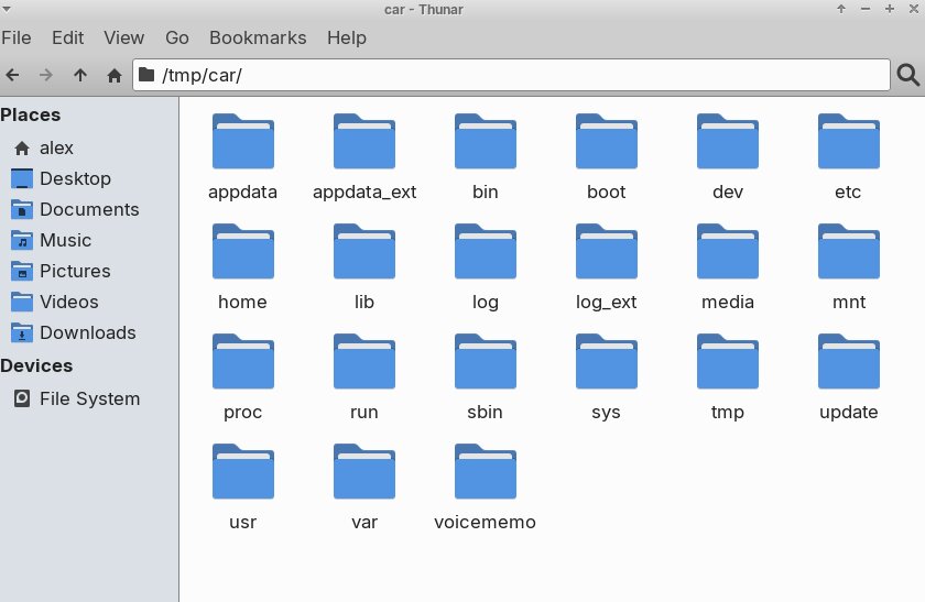 Mounting the image (sudo mount -t ext4 -o loop system.img /tmp/car/) gave me a lovely root FS of the headunit: